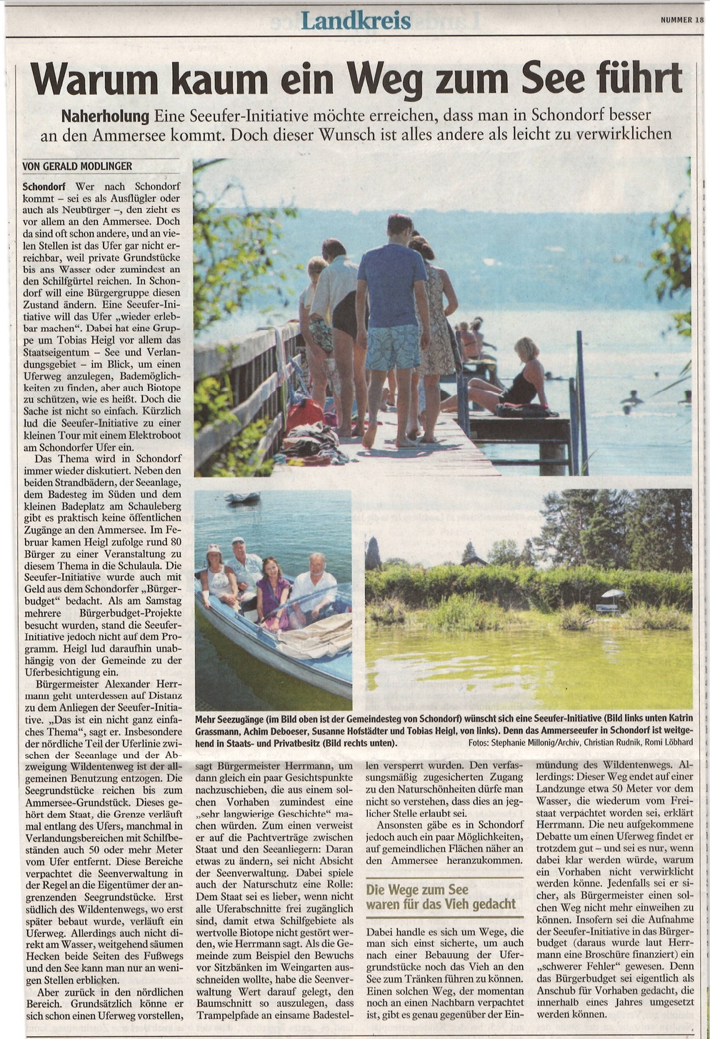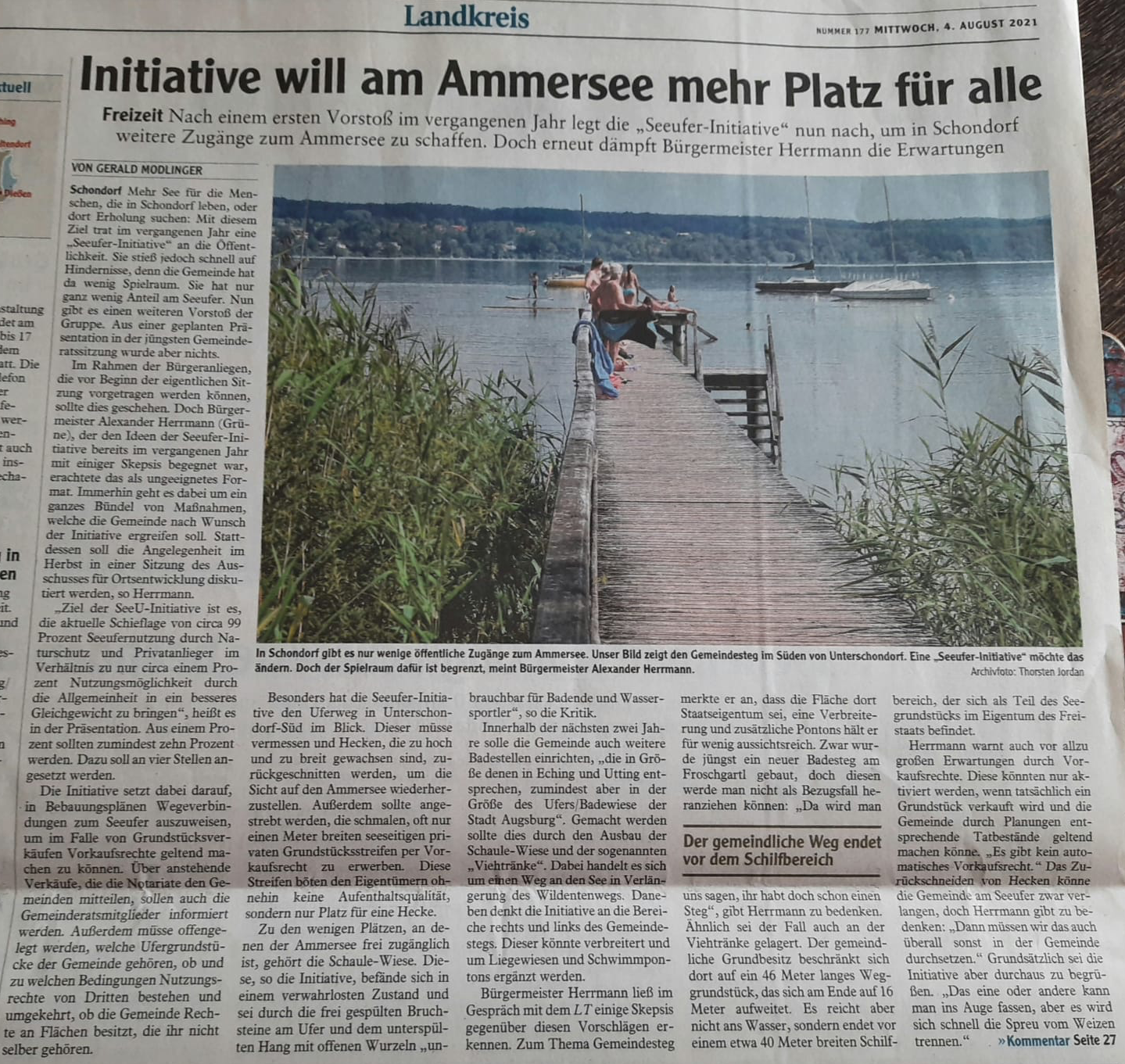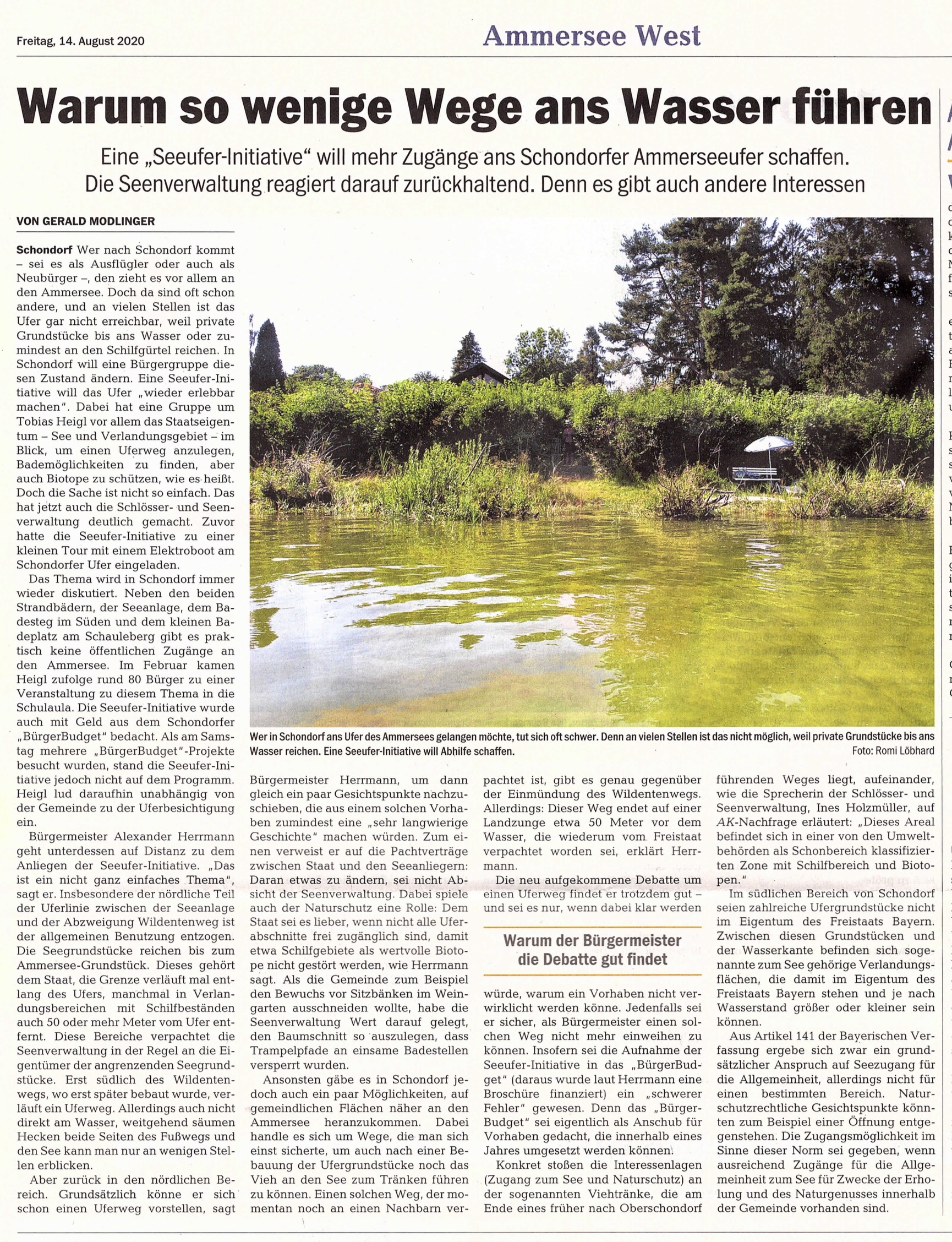 Im Kontrast dazu hätten laut Tobias Heigl die Schondorfer Bürger nur einen äußerst eingeschränkten direkten Zugang zum See. Am anderen Seeufer in Breitbrunn könne bei ähnlichen Ausmaßen ein Großteil des Ufers bei gleicher Rechtslage öffentlich genutzt werden.
